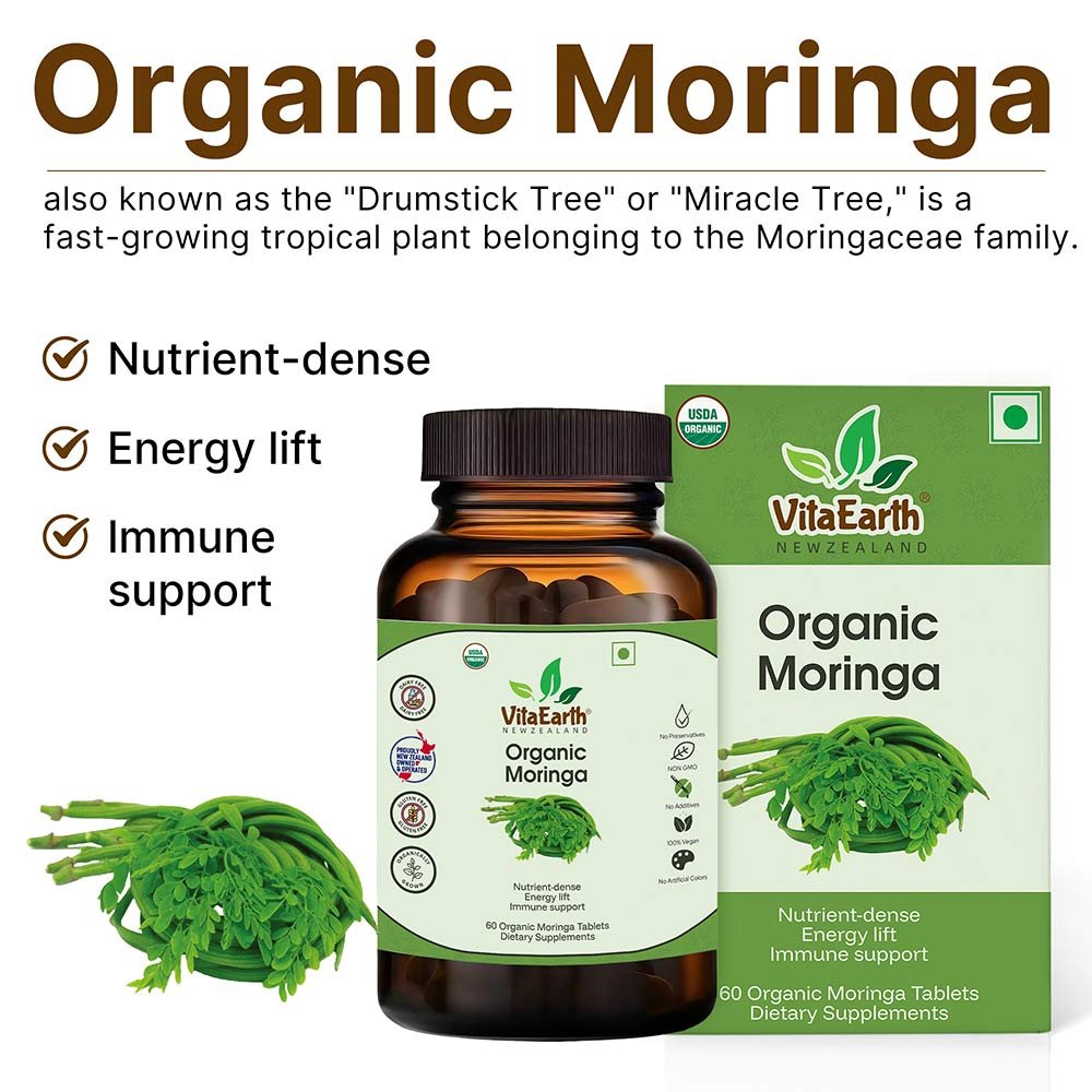 Carefully sourced from organically grown Moringa leaves and processed to preserve their natural potency, Vita Earth Organic Moringa offers a convenient way to include this powerful plant in your daily routine.
